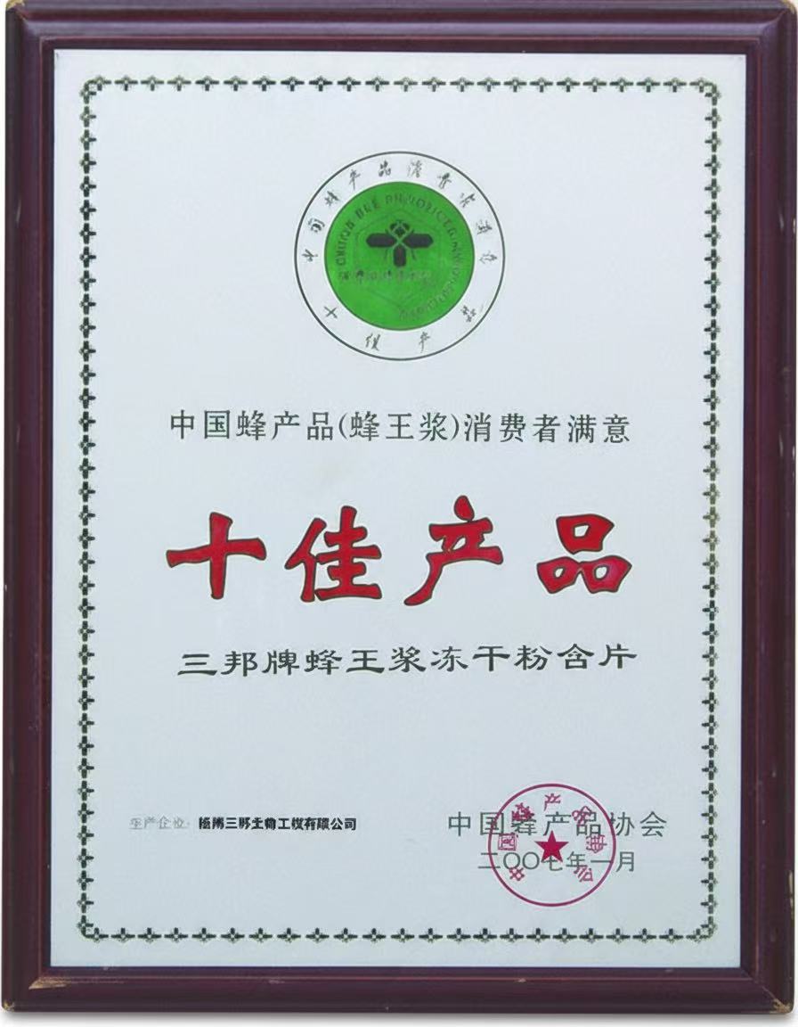 • 中國蜂產品消費者滿意十佳產品